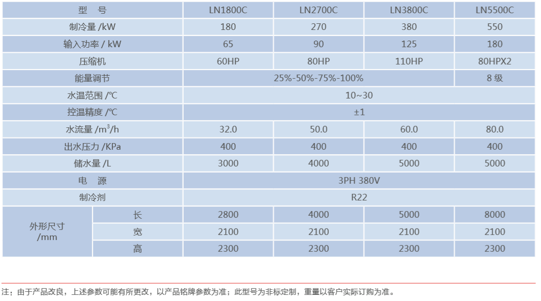 根據(jù)用戶要求的制冷量而定制,制冷主機采用效率更高的螺桿式制冷壓縮機,視功率大小室外機或為單臺和多臺分別控制運行。配 7 寸 PLC 彩色 液晶觸摸屏,功能強大,結(jié)構(gòu)緊湊。選配高效低噪聲風機。制冷系統(tǒng)加配經(jīng)濟器和噴液裝置,在提高增提性能的同時,保證壓縮機在環(huán)境溫度下更 可靠的運行。水箱、水泵現(xiàn)場布置。